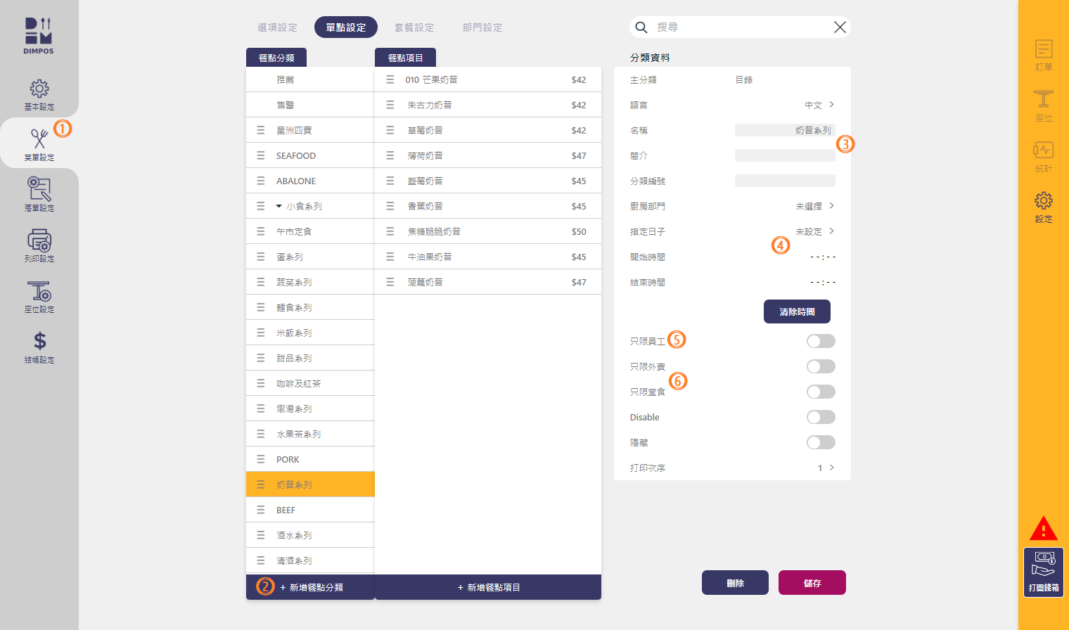 1. 新增「餐點分類」