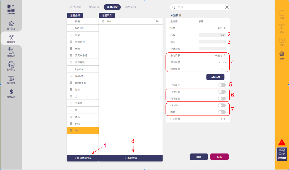 2. 輸入套餐類別名稱,如「晚市套餐」\