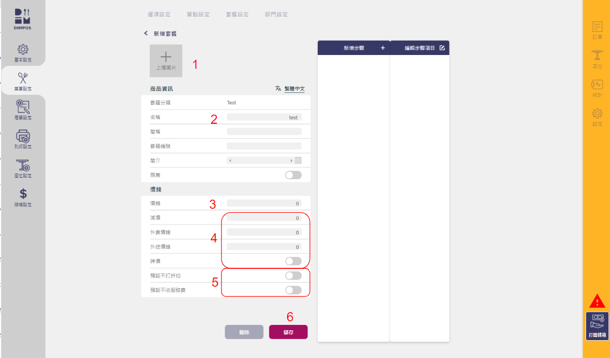 (新流程不要在這裡設定套餐價錢,請在「新增步驟」>「編輯步驟項目」中設定,詳細步驟請參考「6. 新套餐設定流程」)\